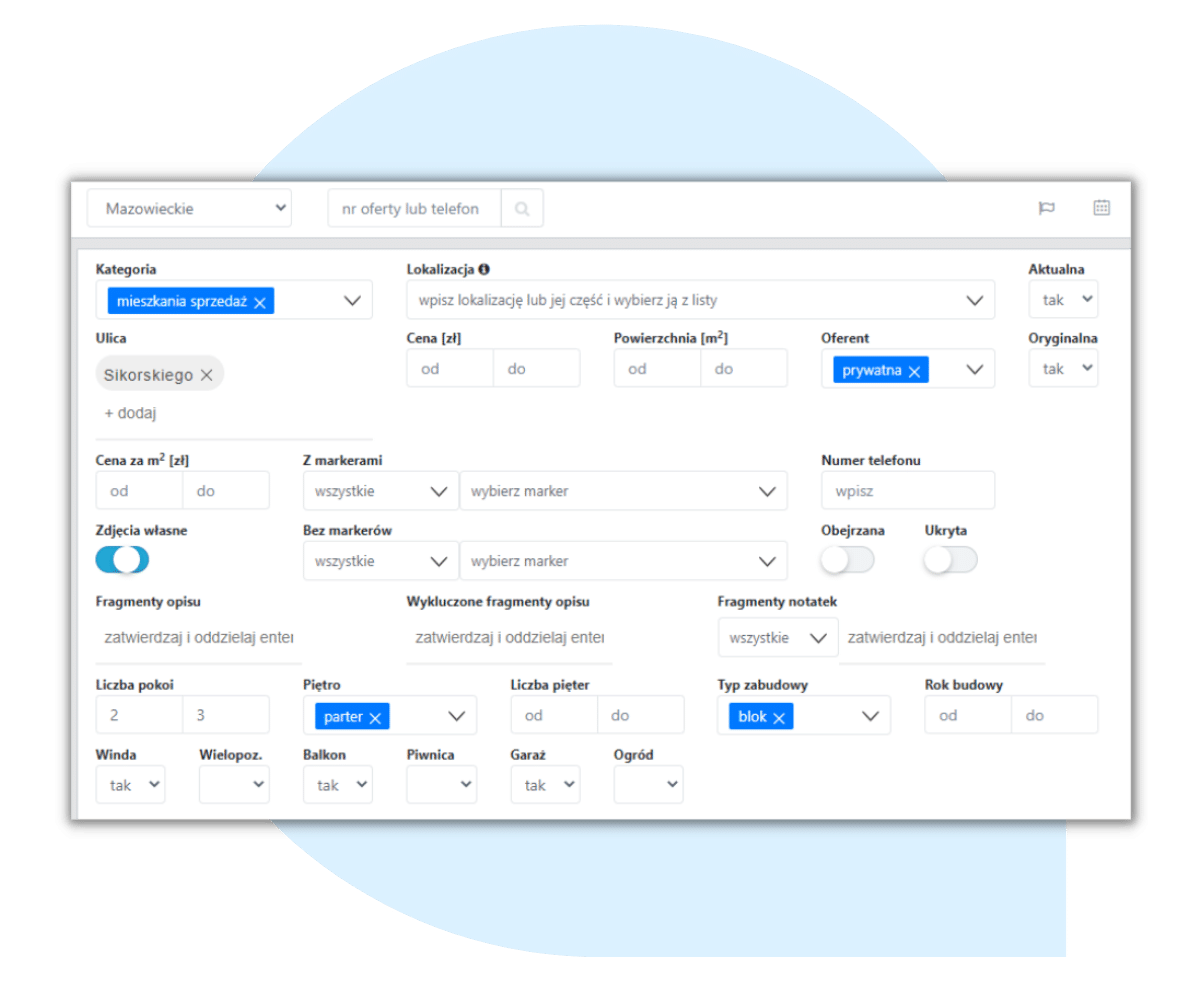 Możesz przeglądać wszystkie dostępne nieruchomości lub tylko aktualne albo nieaktualne na portalach. Masz dostęp do zaktualizowanych cen nieruchomości i możesz śledzić zmiany cen w ogłoszeniach.