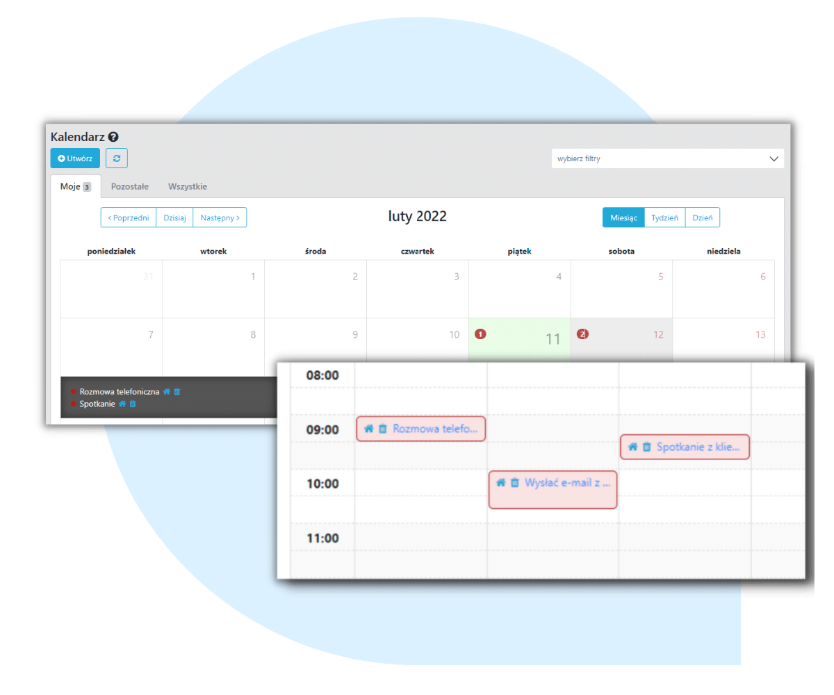 Działania, zwane inaczej kalendarzem, zaoszczędzą Twój czas i pomogą Ci w pełni wykorzystać każdy dzień pracy. Działania w połączeniu z szansami pozyskania lub sprzedaży ułatwią pozyskiwanie oraz sprzedaż i wynajem nieruchomości.