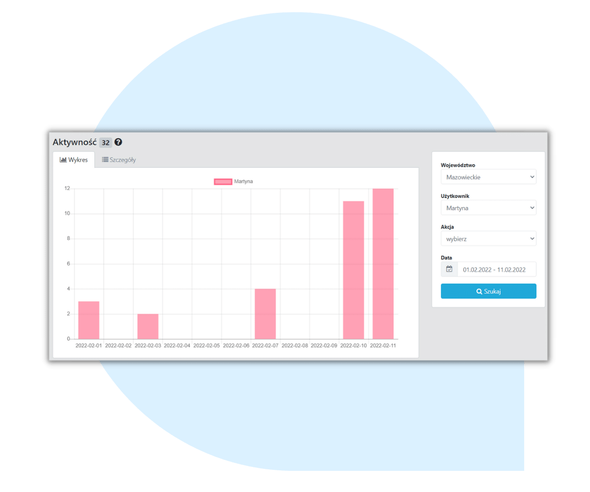 Masz możliwość sprawdzenia, jakie działania w wybranym przez Ciebie okresie wykonałeś Ty i Twoi pracownicy. Monitorowanie aktywności innych użytkowników możliwe jest tylko przez administratora.