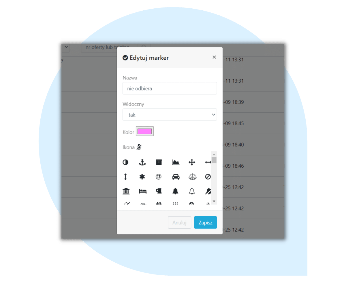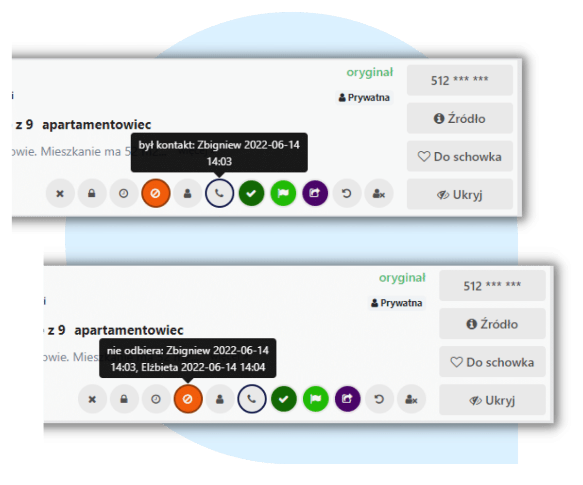 Możesz oznaczać oferty markerami, będącymi lepszą alternatywą dla dodawania krótkich notatek (komentarzy). Masz też możliwość wybrania markera zaznaczonego już wcześniej przez innego użytkownika.
